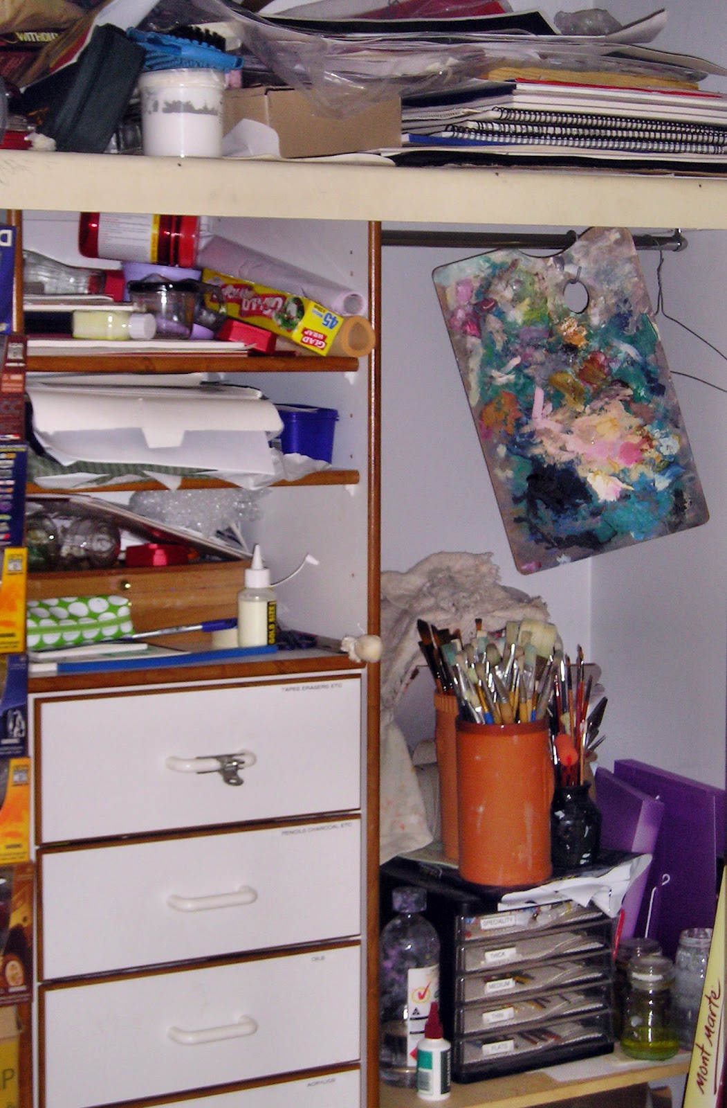Even the cupboard when I store extra paint, palettes, paper rolls, etc got a bit of a clean up .... lol.